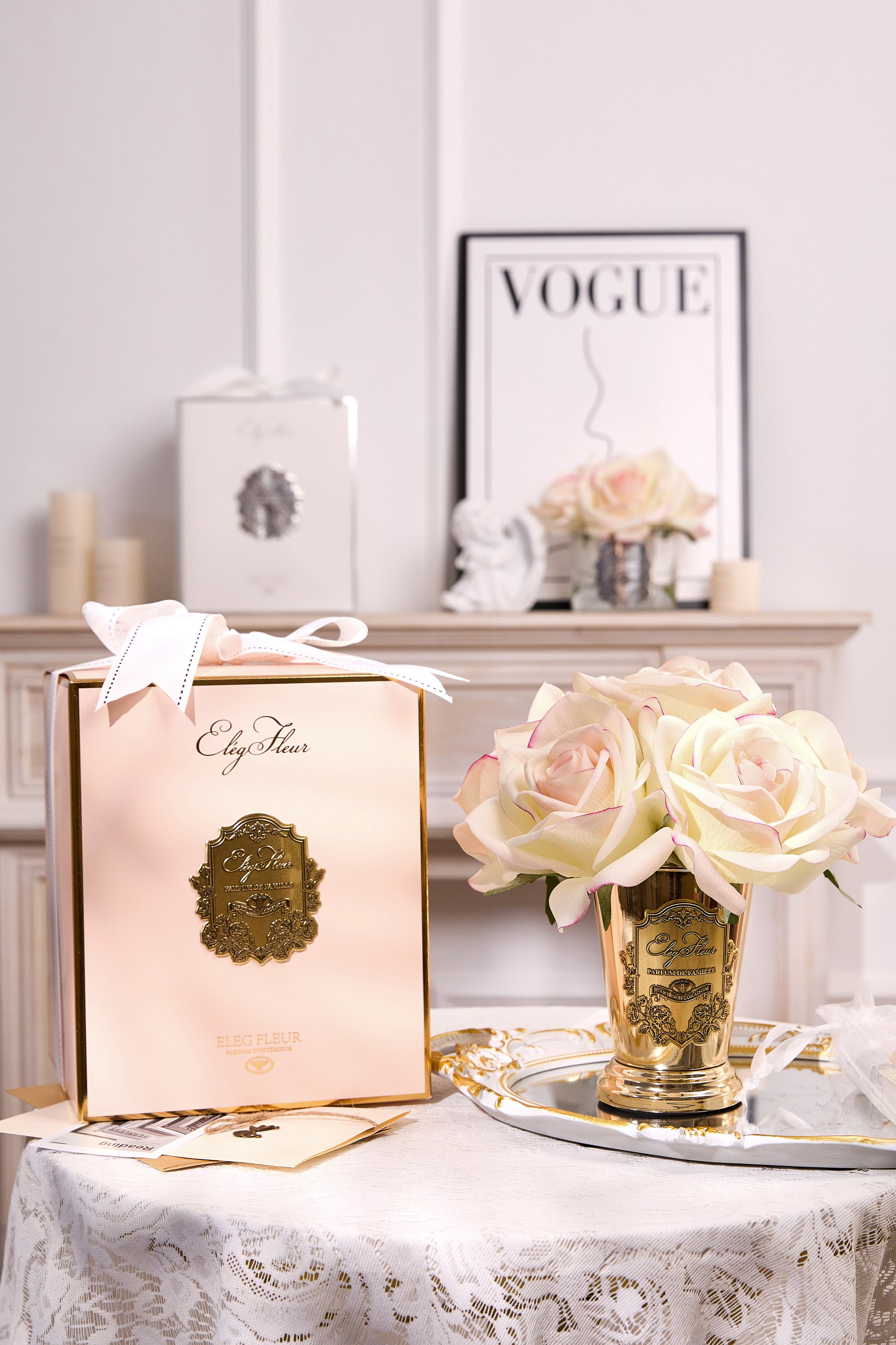 ElegFleur - Elegant Gold-plated Cone Vase British Rose Bouquet - Cream